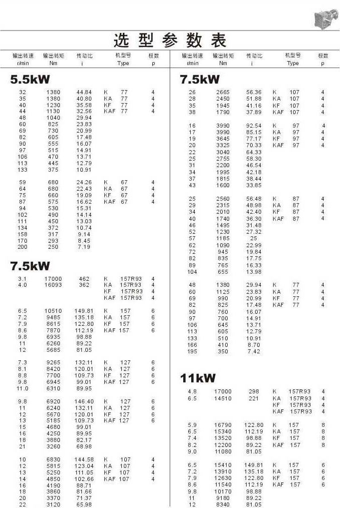 選型參數(shù)表5.5kW(續(xù))和7.5kW,11kW